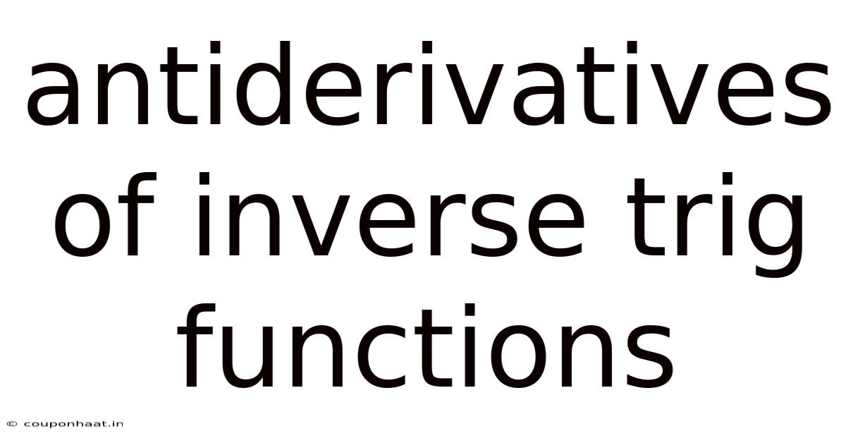 Finding the antiderivatives of inverse trigonometric functions might seem daunting at first glance. These functions, often encountered in calculus and its applications, require a nuanced understanding of integration techniques and a bit of clever manipulation. This full breakdown will walk you through the process of finding these antiderivatives, providing detailed explanations, examples, and addressing frequently asked questions. We'll cover the core methods and dig into the underlying principles to solidify your understanding. This article aims to equip you with the necessary tools to confidently tackle problems involving the antiderivatives of inverse trigonometric functions, expanding your calculus skillset significantly No workaround needed..