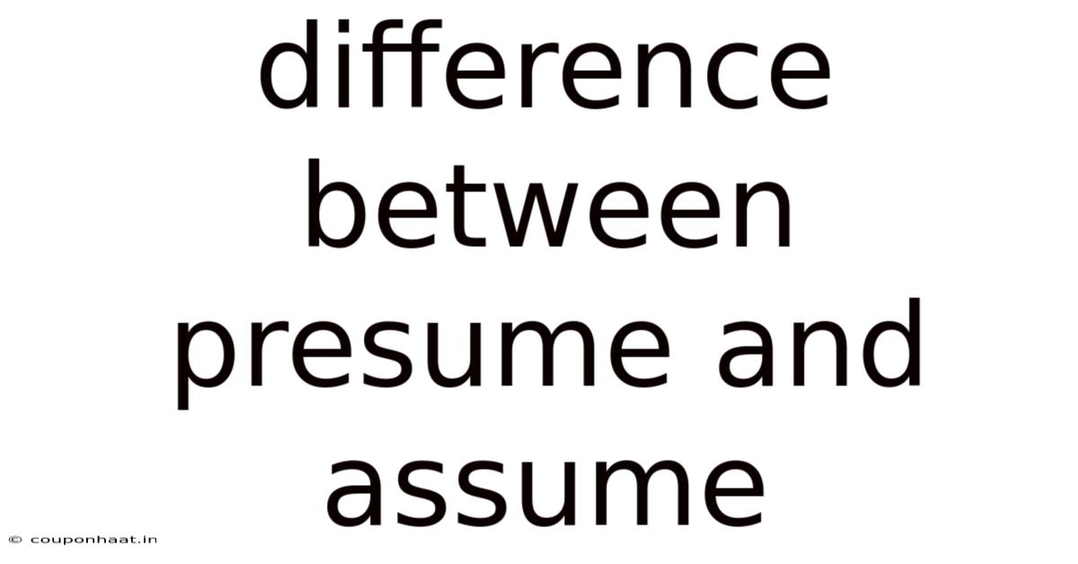 Understanding the difference between "presume" and "assume" can be surprisingly tricky, even for native English speakers. That said, we'll examine the subtle distinctions that separate these seemingly similar words, equipping you with the knowledge to confidently choose the most appropriate verb in any given context. On the flip side, this full breakdown will look at the nuances of each verb, exploring their definitions, usage examples, and the potential pitfalls of misusing them. While often used interchangeably in casual conversation, these verbs carry distinct connotations and implications that significantly impact the accuracy and clarity of your communication. Mastering this difference will elevate your writing and speaking, ensuring your message is conveyed precisely and effectively That's the part that actually makes a difference..